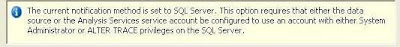 You can read about it in Darren's post "Proactive Caching - SQL Server Notification Permissions".
