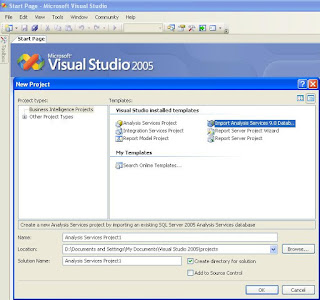 In many of my projects, I have heard my developers asking each other whether it is possible to get the solution file of a SSAS database and I have turned a deaf ear to almost all the cases in spite of knowing the answer. Now before you give me that flabbergasted look, let me try to justify my position. As an IT company, we do have certain processes and one of them is to keep your code in VSS (used for version management). Unless you follow this rule, there is every chance that you might miss upon a particular Change Request / functionality and end up implementing a new fix on an outdated version. And it is not common to see people doing their development work on the online version of SSAS (which is the SSAS database) because it is much easier. You just have to save your work to see the changes while if you need to do the same changes in the offline version (which is the solution file), you will need to save it and then deploy to see the changes (talking about changes like modifying the calculated members script. For most other changes, the cube has to be processed for the changes to be reflected). So I would rather not let them know the answer so that they are extra careful in the future and avoid making changes in the online version.