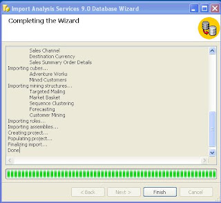4) The Wizard will start importing the source files from the database and on completion, the Finish button will be activated. Click on Finish.